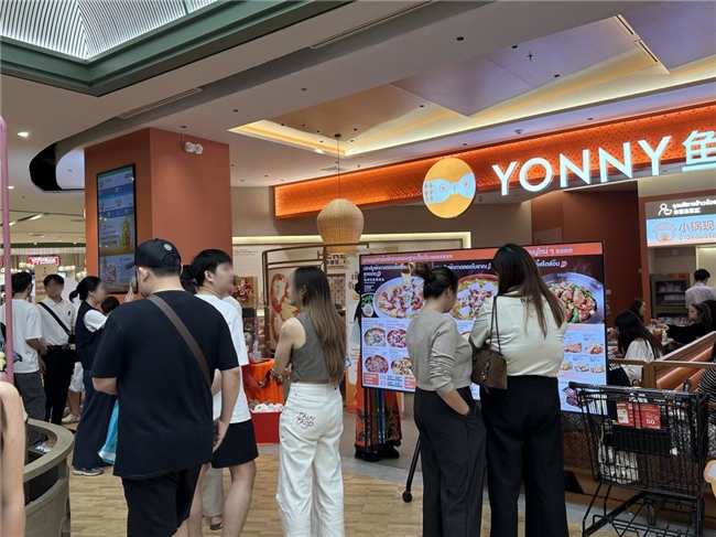 泰国餐饮市场中,中国品牌正以连锁规模优势和精准本土化策略实现渗透。11月15日,中国知名酸菜鱼品牌鱼你在一起在泰国曼谷Central Pinklao Mall开出其当地第二家门店。开业当日,店外即排起长队,成为商圈新晋的“翻台王”,单日接待顾客近500人,延续了品牌在泰国的火爆势头。