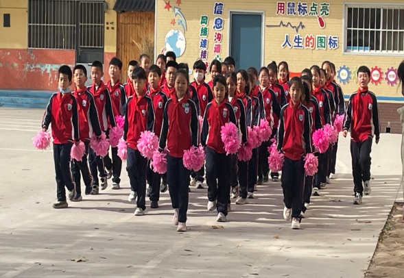 运动会在欢快的入场式中拉开帷幕。各班级方阵迈着整齐的步伐,喊着响亮的口号依次入场。有的班级手持粉色花球,活力满满;有的班级挥舞绿色花球,朝气蓬勃。
