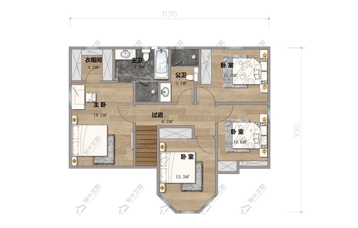上下两层均布局双卫,巧妙化解多成员家庭早晨的“高峰期”,让日常生活从容有序。