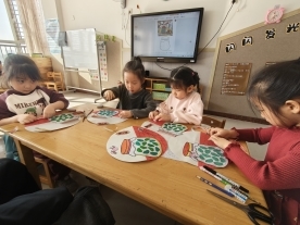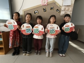 制作环节中,幼儿们用彩纸、黏土、各类豆子等材料创作“腊八蒜”“腊八粥”手工作品,过程中不仅锻炼了精细动作,还通过色彩搭配和造型设计发挥创造力。教室里充满专注的氛围,孩子们互相帮助,共同完成作品,体验合作与分享的快乐。活动最后,孩子们手持完成的作品合影留念。一个个色彩鲜艳的手工作品,成为他们参与传统文化活动的珍贵纪念。老师们将作品展示在教室外墙,形成一道独特的“腊八文化墙”,让孩子们感受创作的成就感,也让家长直观看到孩子在活动中的成长。