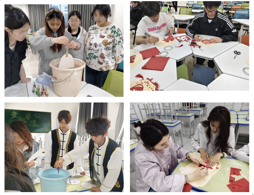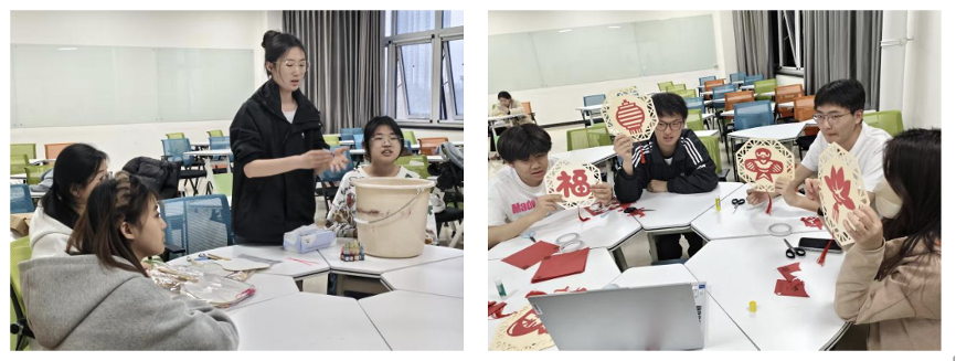实践体验环节,两地学子同步动手、云端互动。志愿者实时指导、耐心答疑。漆扇制作中,大家手持素扇,细心勾勒,一把把独具特色的漆扇次第呈现,将传统技艺与青春创意完美融合。剪纸课堂上,同学们对折、画样、剪裁,一把剪刀、一张红纸,在指尖流转间,剪出吉祥纹样与创意图案,尽显传统民间艺术的灵动之美。尽管相隔千里,青年学子们默契协作、热情分享,极大地增强了中华民族的凝聚力与向心力,充分展现了新时代青年积极向上、乐于传承的精神风貌。